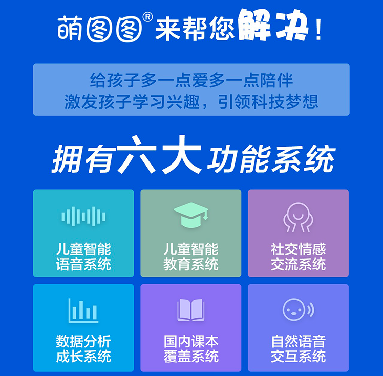 萌图图智能教育机器人就是一款专注于儿童方面的机器人,萌图图的形象友好可爱、富有亲和力,这样有利于孩子增强对机器人的接纳程度,使学习、游戏的场景更加融洽。萌图图智能教育机器人具有以下功能: 一 、知识...